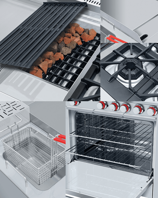 · Parrila de 4 quemadores octagonales con tapa desmontable.