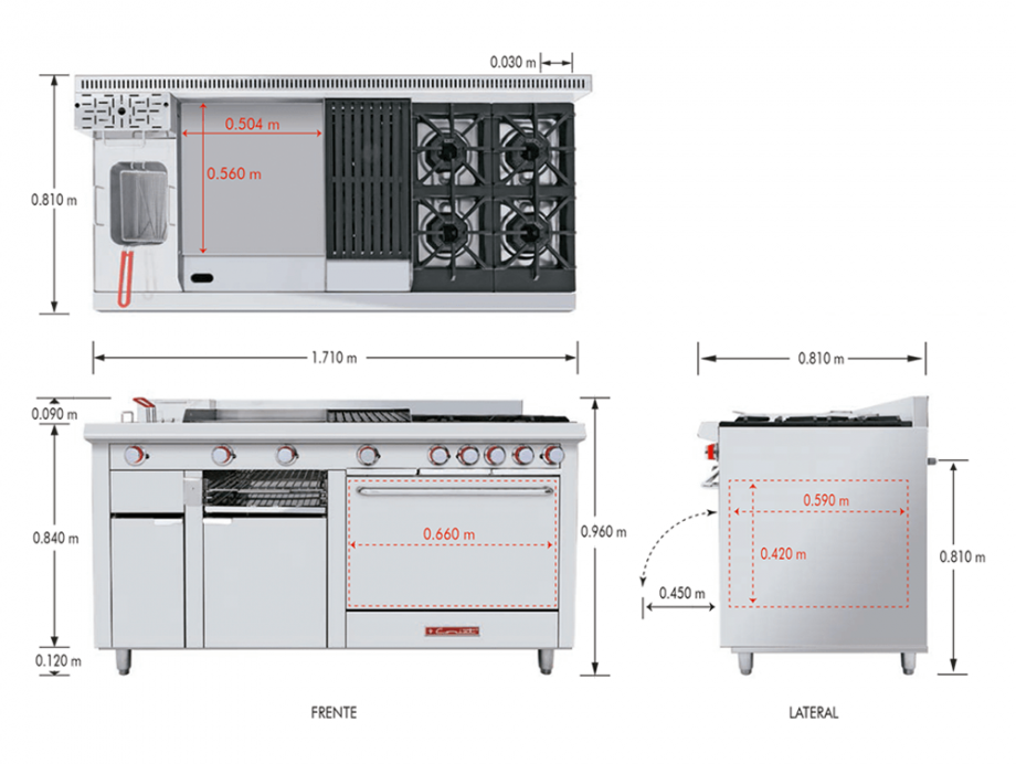 · Gratinador de 0.435 m de frente con parrilla niquelada.