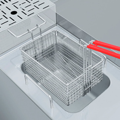 · Freidora con tina en acero inoxidable tipo 304, esquinas sanitarias, capacidad para 3 litros de aceite, medida interior: Frente: 0.204 m, Fondo: 0.300 m, Alto: 0.150 m